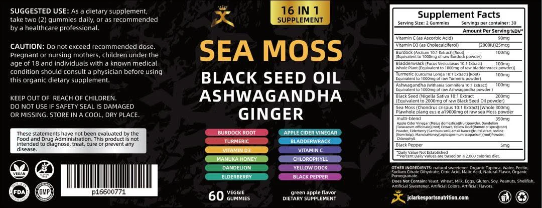 Our JC Sea Moss Gummies are designed to support overall well-being, offering a unique blend of natural ingredients that work together to promote a balanced and healthy lifestyle. Packed with key nutrients, this supplement is a great addition to your daily routine.